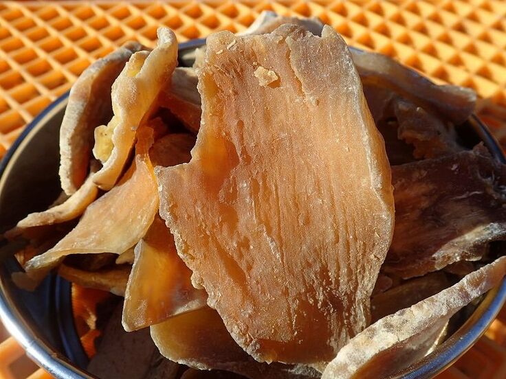 これは日本の干しいもをさらに乾燥させて、そのままでは歯が立たないくらいにまで乾燥したものです。農村では、子供がおやつにマトボルワを1枚貰って、しゃぶって唾液で柔らかくなったところから食べる…というようなことがあるようです。