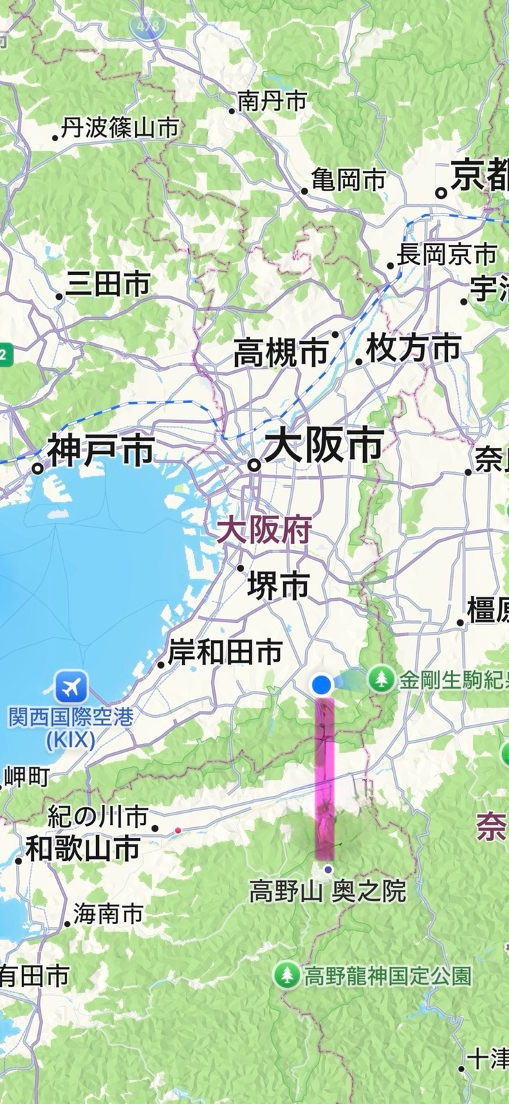 観心寺と高野山は直線距離で約40キロ(10里)。1日で移動できる距離です。