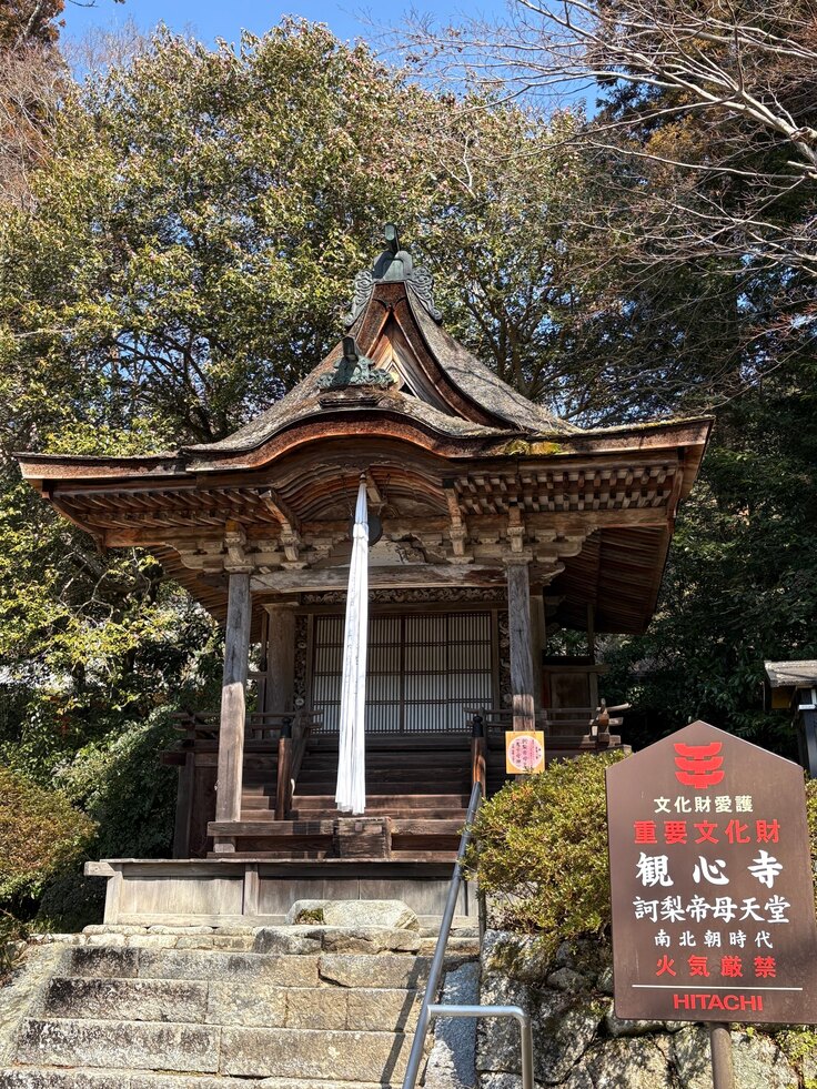 観心寺の伽藍配置は、『七星如意輪法』のとおりに如意輪観音(国宝)の周りに時計回りに北斗七星が配置され、南側に鎮守として訶梨帝母天(鬼子母神)がまつられています。