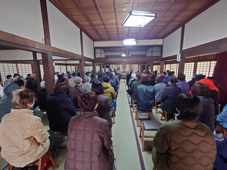 季節外れの雪がまだ残る寒い朝でしたが、午前2回、午後2回の彼岸中日法要に多くの方が参加されました。