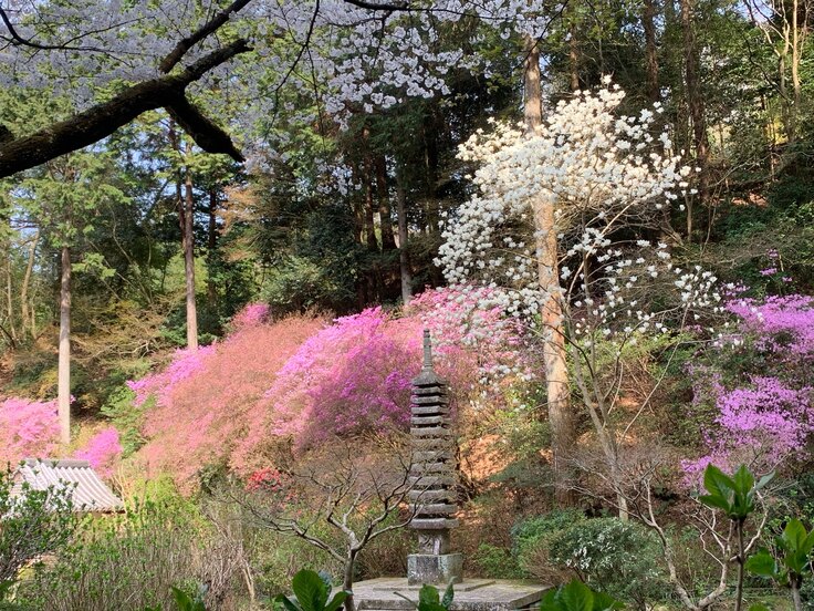 当寺と同じ「関西花の寺25ヵ所霊場会」に属している、浄瑠璃寺さんと岩船寺さんのミツバツツジの写真です。