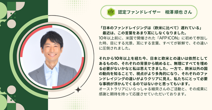 認定ファンドレイザーの相澤 順也さんから応援メッセージをいただきました!