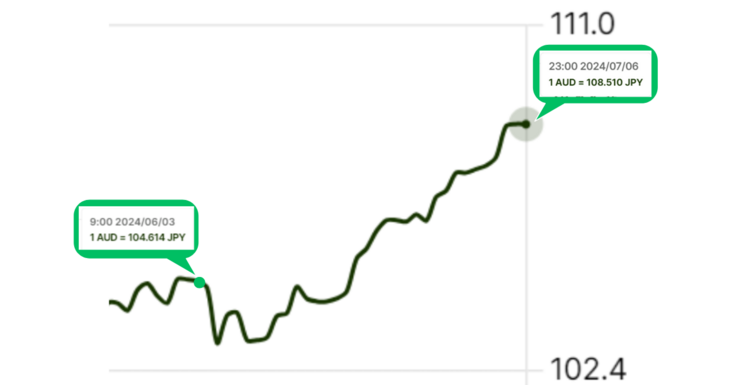 1豪ドル104円→108円になってしまいました...