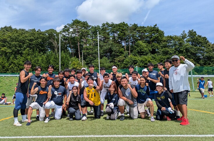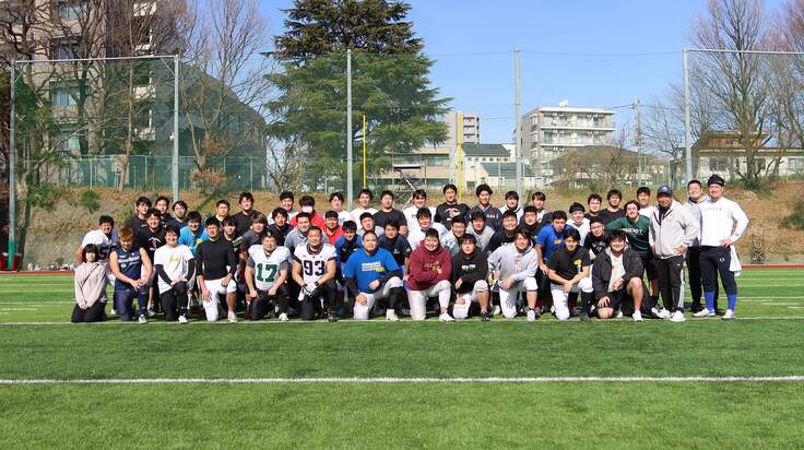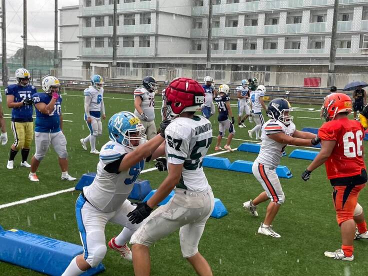 利点としましては、コーチが増えるので細かい部分までコーチングが出来るのと同時に、関東と関西のアメフトの違いがあるので新しいスキルなどのレクチャーが出来るので色々な考え方・スキルなどを習得出来ます。
