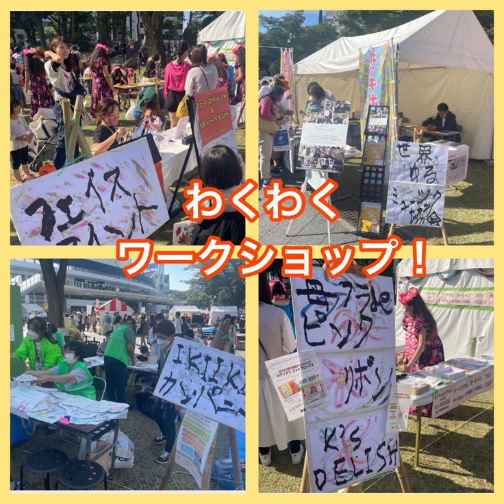 手作り楽器体験や、ハ―バリウムのボールペン作り体験、フェイスペイントなど