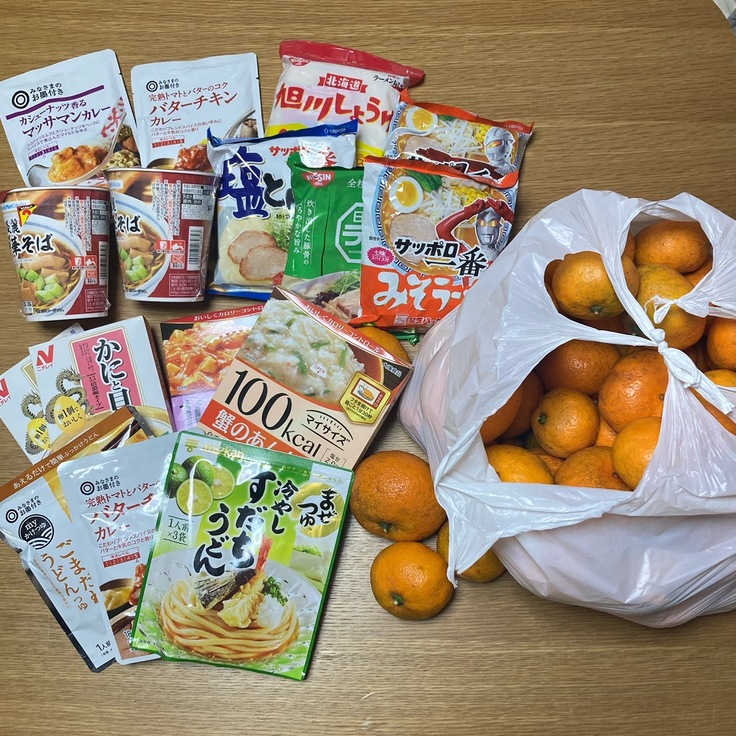 (15~20名分の食事、飲料、衛生用品等)