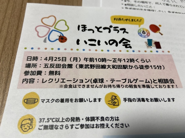 【残り10日】居場所づくり活動(いこいの会)再開へ