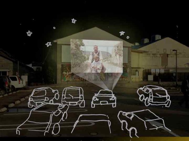 「この場所だったら上映する映画はこれかな。」