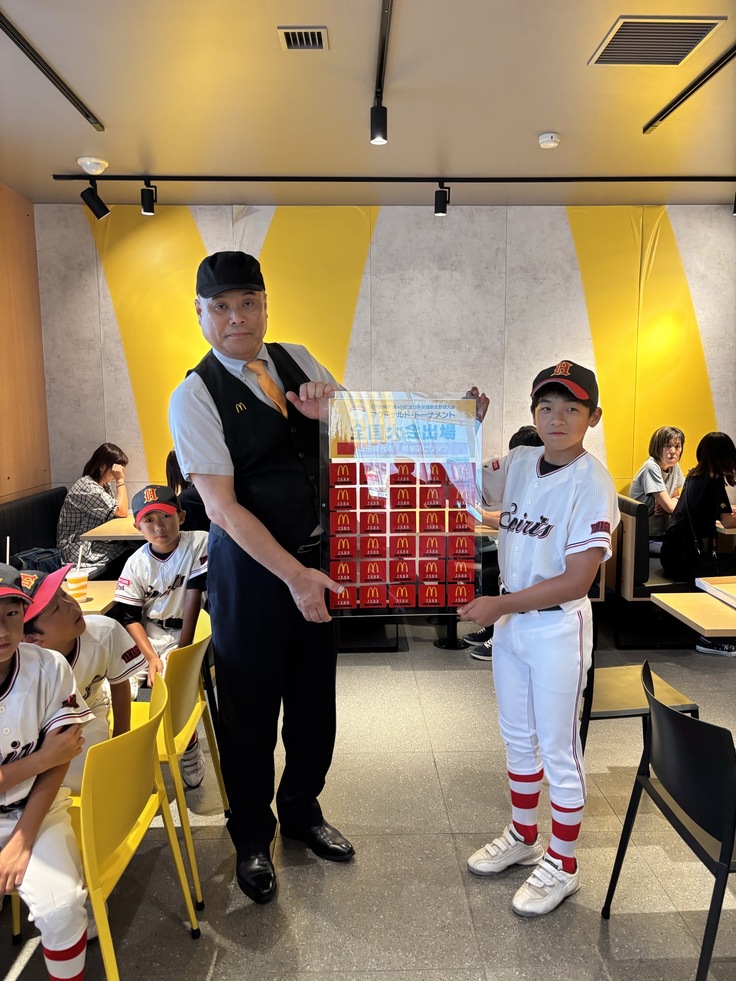 7月24日(金)マクドナルド112鶴岡店でマクドナルド・トーナメント全国大会出場の証しである、マクドナルドワッペンの贈呈式が行われました!