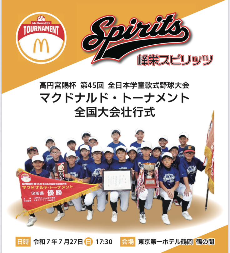 7月27日(日)東京第一ホテル鶴岡で、マクドナルド・トーナメント全国大会壮行式を開催しました🚩