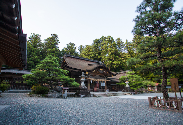 30万坪(東京ドーム21個分)に及ぶ広大なご神域は、古くより息づく杉檜の大樹の森が広がっています。