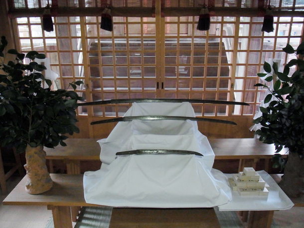 4月19日(火)高岡神社の祈年祭(春祭)で奉納刀が無事研磨できるように祈念して頂きました。厳粛な式に出席して、思いも新たに奉納刀研磨プロジェクトのさらなる成功を祈願しました。このあと氏子の方にプロジェクトの経過報告をさせて頂き、405,000円の支援金が集まりました。また、NHK岡山テレビとラジオ、RNC西日本放送の方が取材に来てくれました。いよいよ奉納刀の研磨に取りかかります。1振目の国重は、黒田守寿さんへお渡しして研磨して頂きます。祐国の2振はおさふね刀剣の里で下研ぎから実演してもらいますので、是非来てみて下さい。