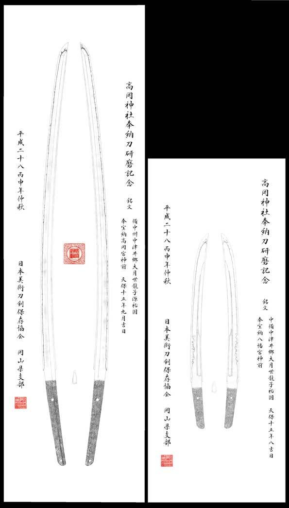 2振目と3振目に研ぎ上げた祐国の押形ができました。片山重恒さんが2振とも書いてくれました。これから表装して支援者名簿とともに高岡神社に奉納いたします。10日から備前長船刀剣博物館で研ぎ上げた奉納刀3振の展示が始まりました。是非見に来てください、1月22日まで展示しています。