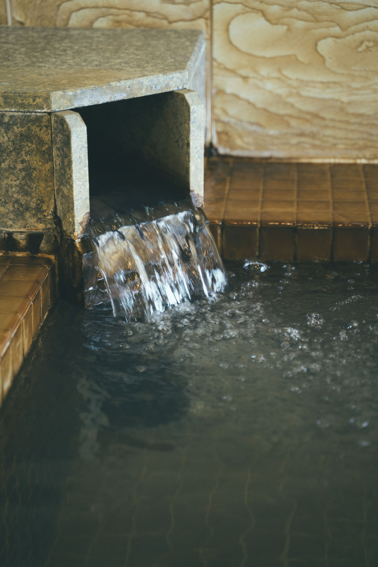 湯口からこんこんと流れる天然温泉は、山の温泉ならではの柔らかな湯あたり。体の芯からじんわり温めてくれます。
