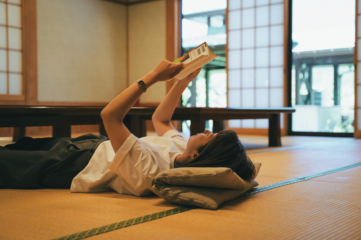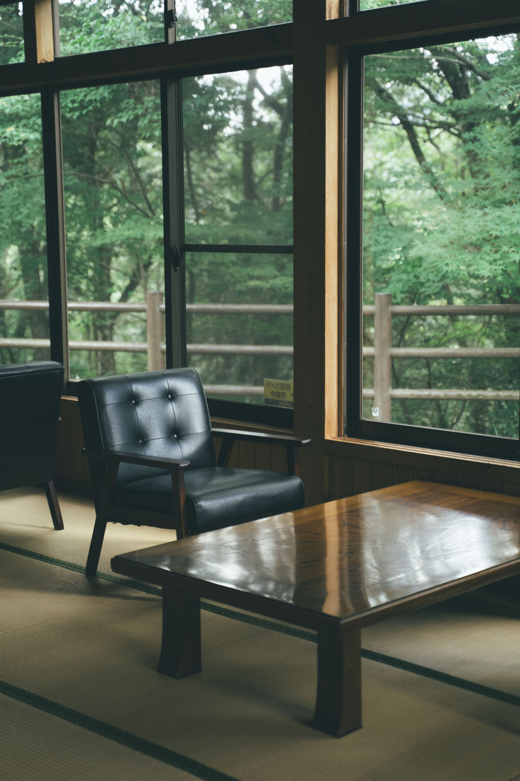 お風呂上がりは畳の広間でごろりと横になるもよし、窓辺の椅子で森を眺めながら本を読むのもおすすめ。まるで山の中の別荘にきたように、思い思いののんびりした時間を過ごしていただけます。