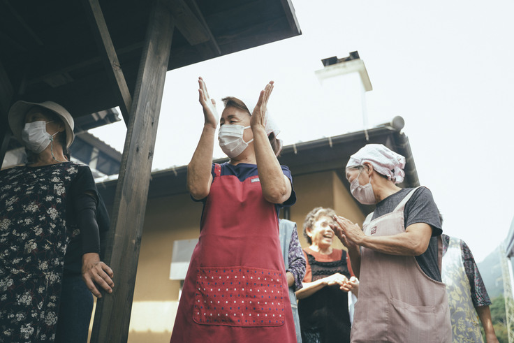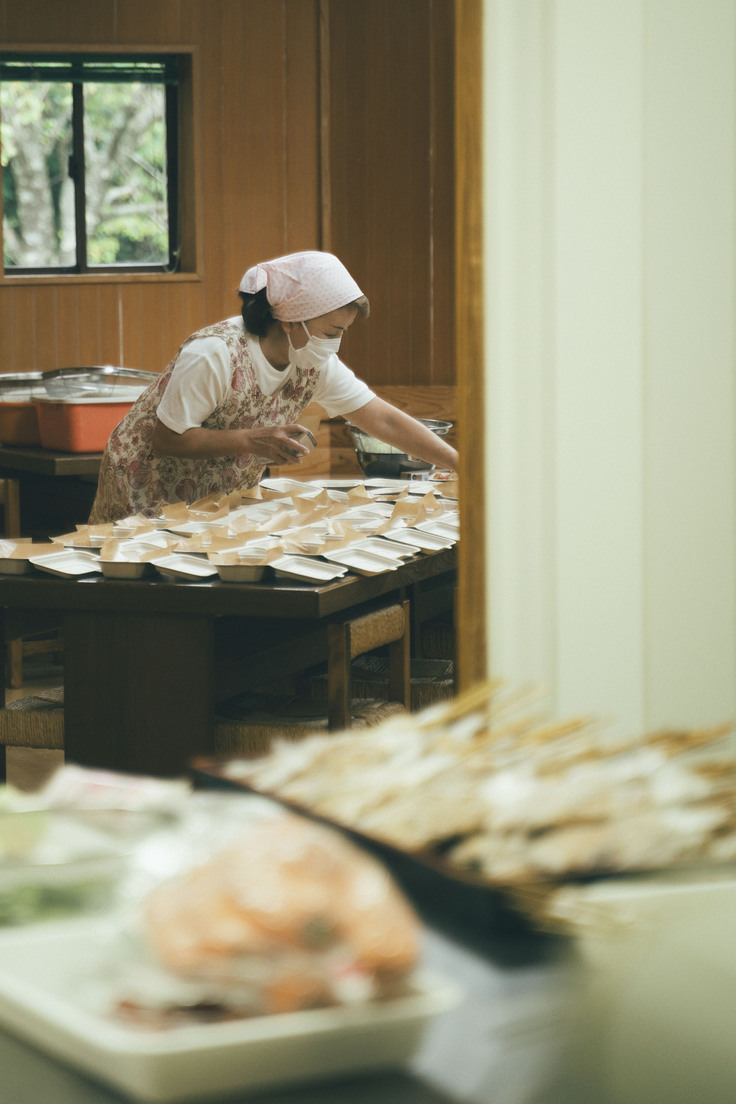 祝子川温泉の食堂では、地元のお母さんたちが日々お手伝いをしてくださっています。