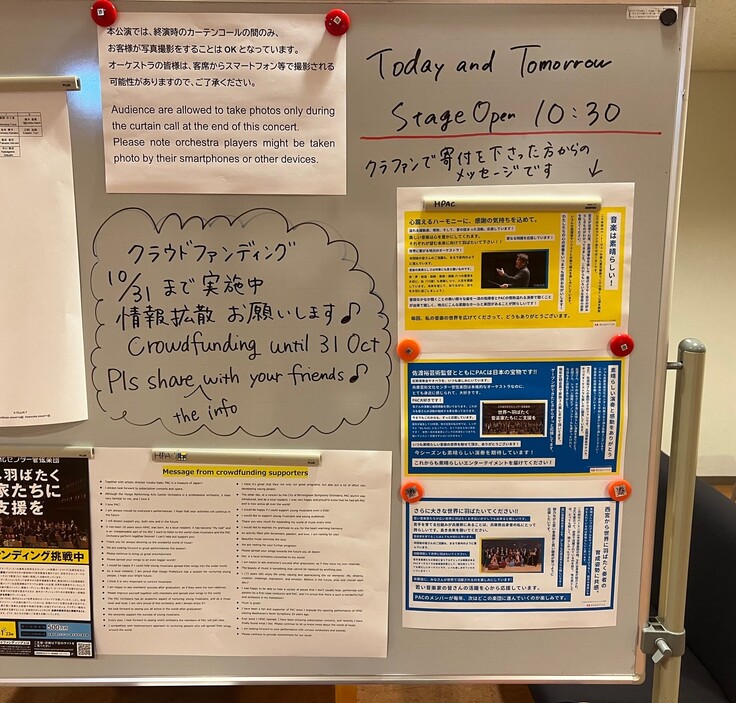 ちなみにいただいたメッセージは、10/27-29の第145回定期演奏会の会場や、メンバーの楽屋エリアにも掲示しております。外国人メンバー向けに英語バージョンも作成!