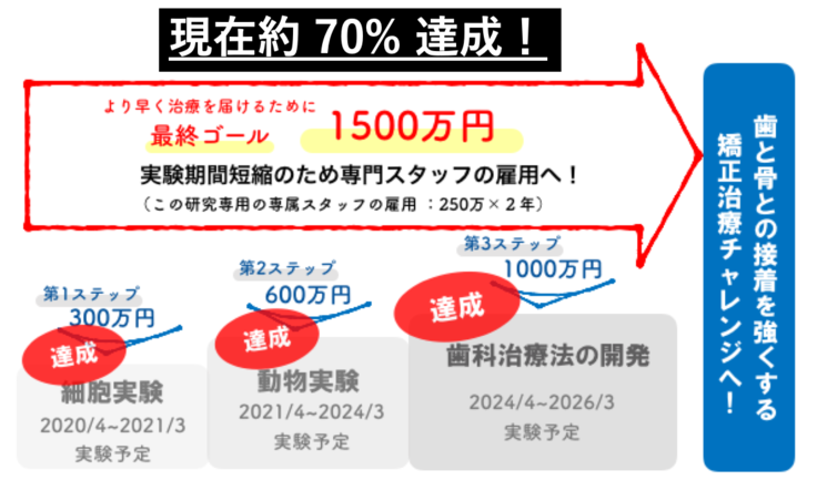 今後、歯科領域でさらに認知度が上がり、患者さんの早期発見につながることを祈念しています。私たちは、早期発見された患者さんに新しい根本治療法をお届けできるように全力を尽くしていきたいと思っています。このクラウドファンディング を通じて、多くの研究資金をご提供いただきました。それを有効に活用して、全力を尽くして研究に臨んでいきたいと考えています。研究の進捗状況は、順次発信していきたいと思いますので、今後ともどうぞよろしくお願いいたします。