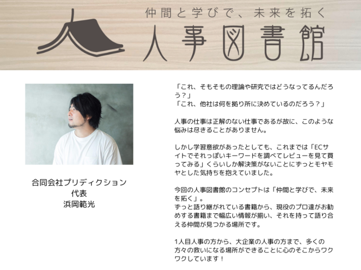 合同会社プリディクション代表、人事コンサルタントや人事向けセミナーの講師など多数務められている浜岡 範光さんより応援を頂いております!