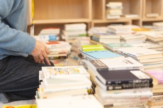 本にテーピングをし、バーコードで読み取り、分類番号を貼り、カテゴリー別に本棚に仕舞っていく、という作業。入れ替わり立ち替わり20名以上の方がご参加くださりました。