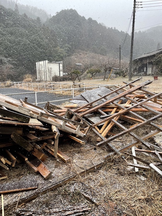 ところが二日目にして雪が降り始め、作業開始4時間で「このまま続けては危険」という判断で作業が中止になってしまいました。