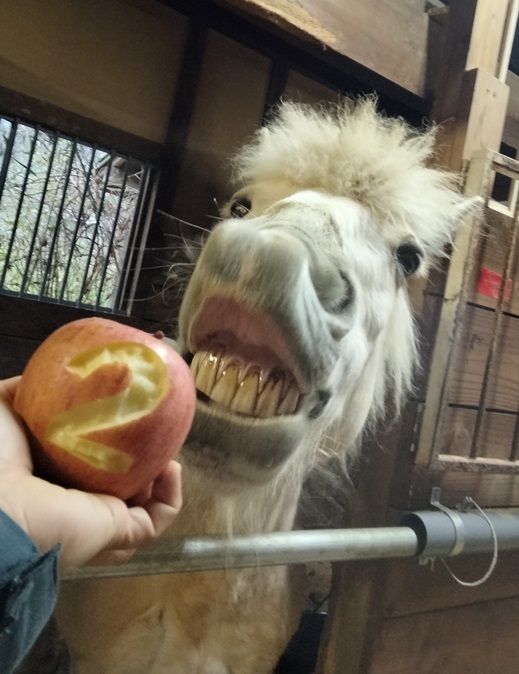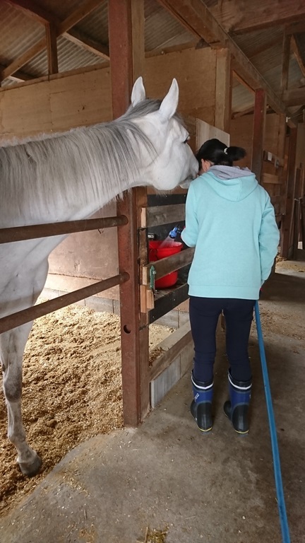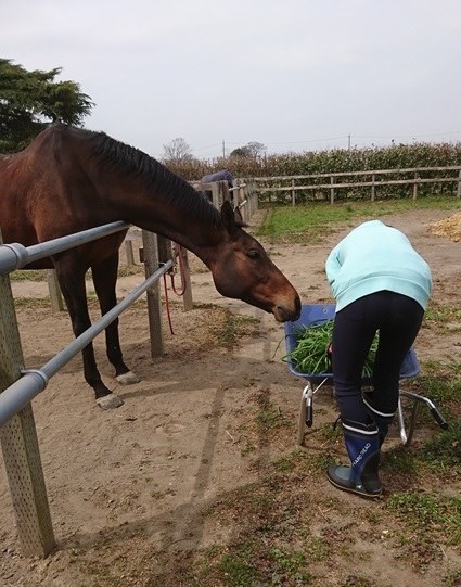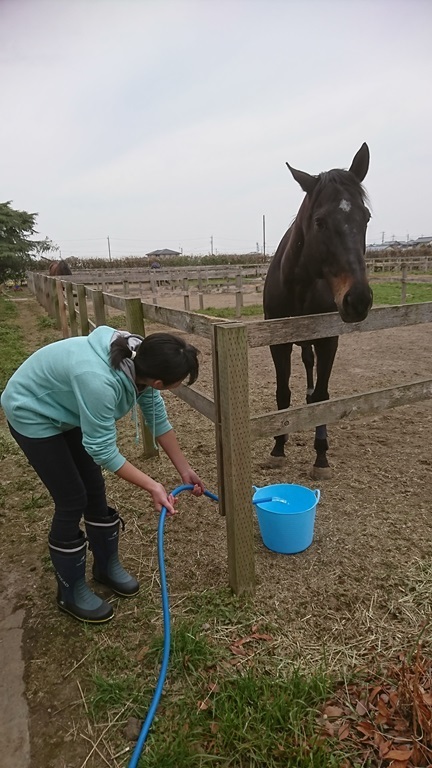 初めて近くで見る馬たちはとっても大きくて最初はおそるおそるでした^^