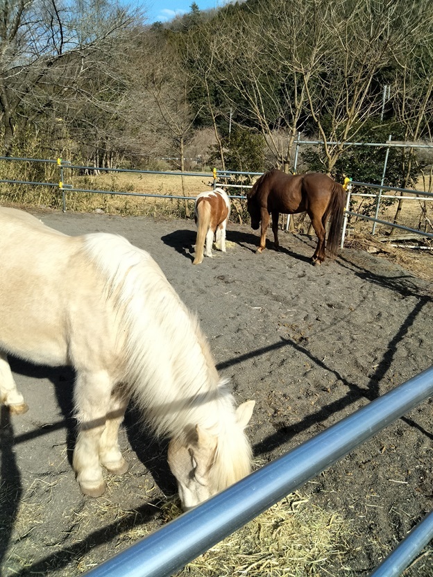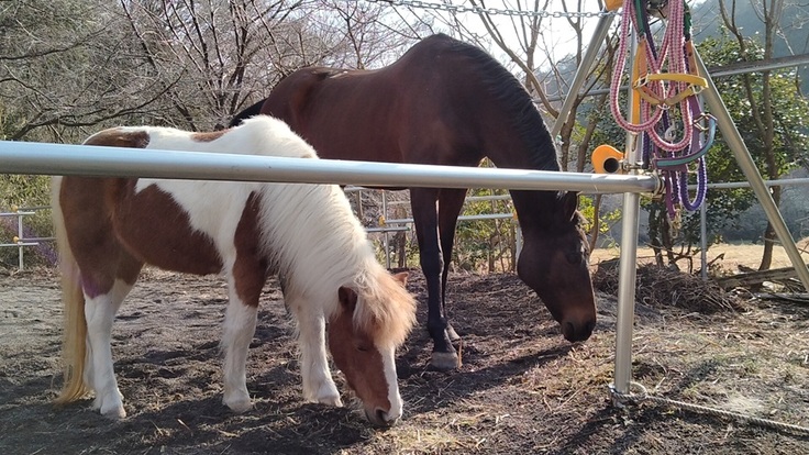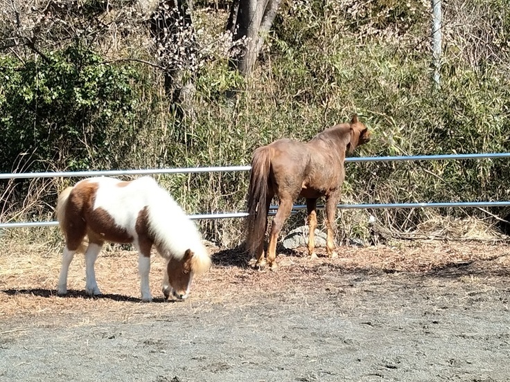 ちびっこ2頭(パインちゃんとマロン)は一緒に放牧できるのですが、