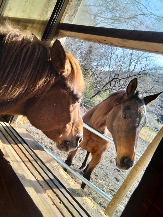 外にいる馬も厩舎に仲間がいるのが見えるので、みんなとても落ち着いて居られる場所で、