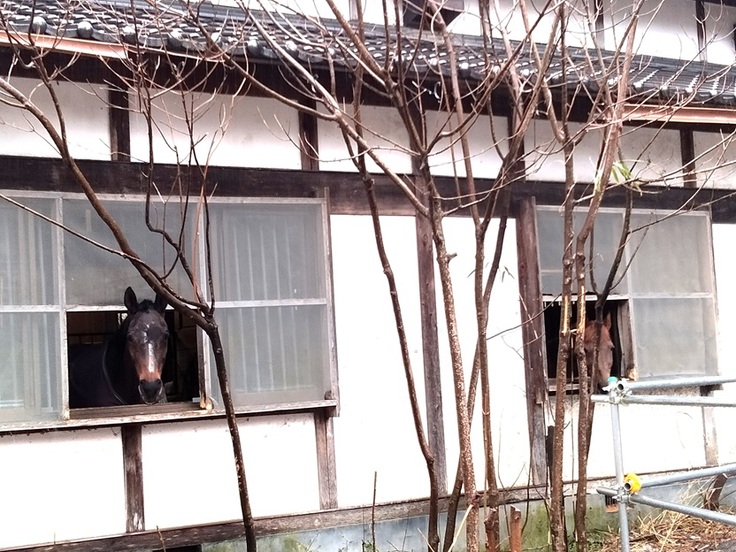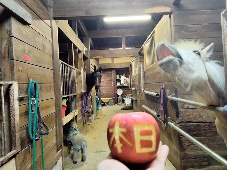 一人黙々と作業する様子を厩舎から見ていたミントしゃんとマロンに気付きました( *´艸`)