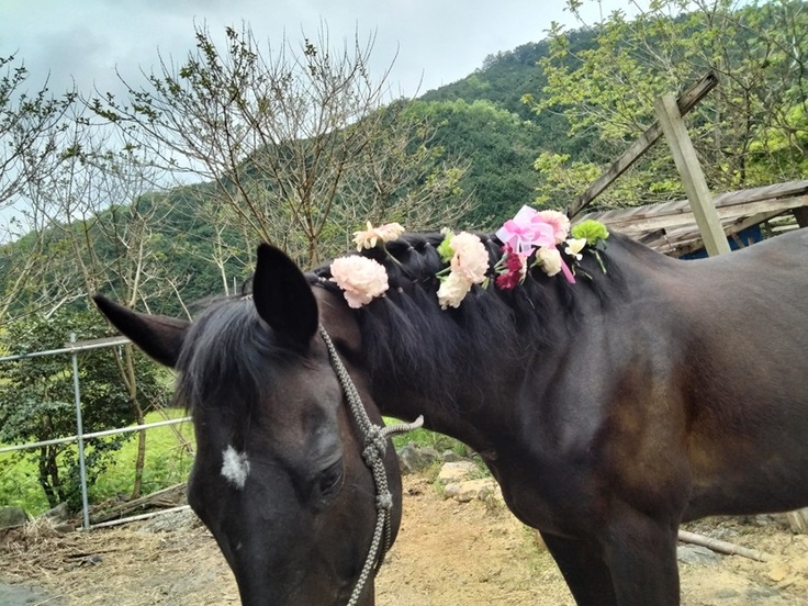 放牧から帰ってきて、たてがみを誕生日パーリーに向けてきれいにしたのですが、