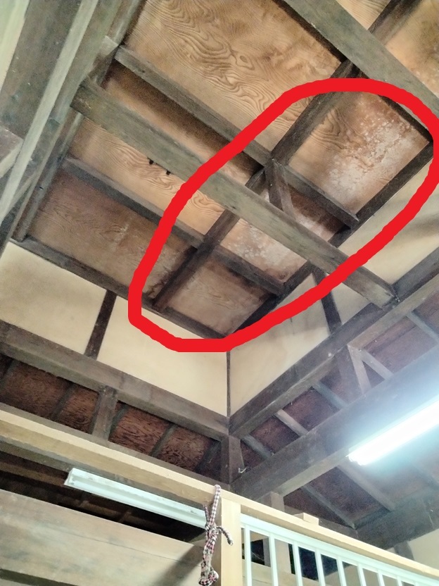 厩舎の天井にも雨染みが何か所かありました(/ω\)
