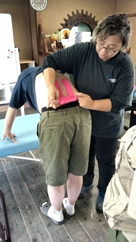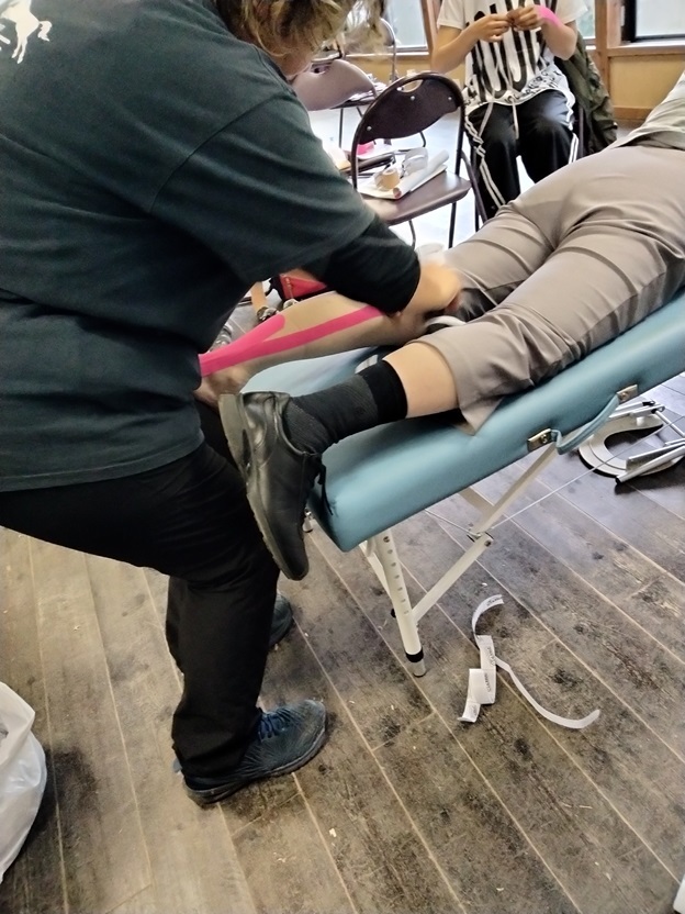 これは、午前中の座学と人へのテーピングで