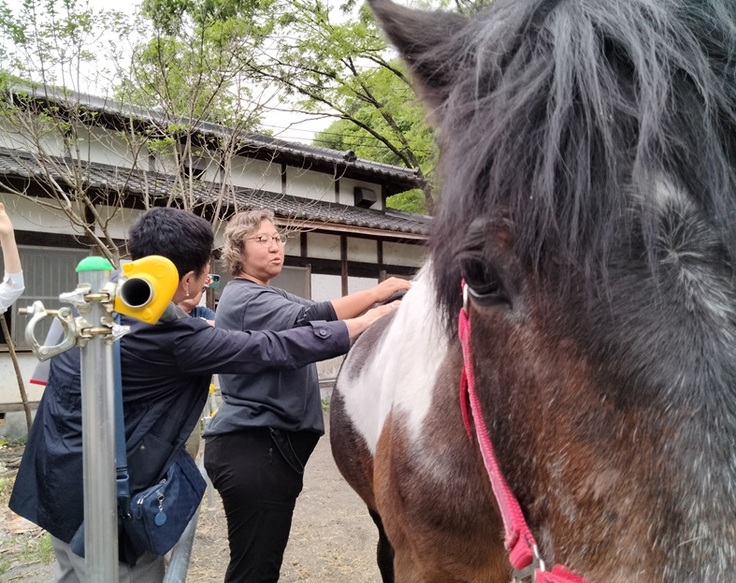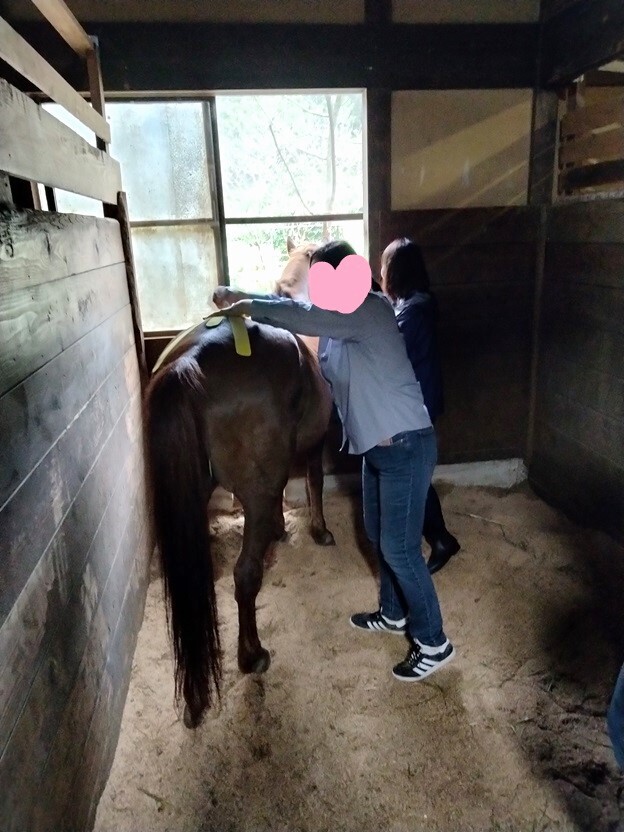 馬体を触ってみて固いところや痛がるところがないかな?と観察してみます。