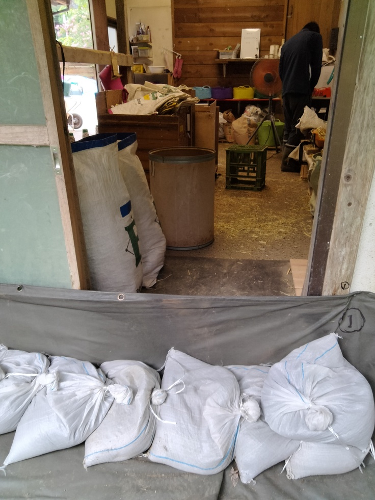 想定される侵入口は、土嚢を積んでその後の台風などを凌いでいます。