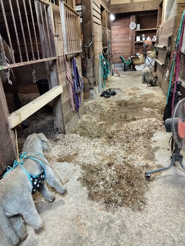豪雨の日、厩舎裏の排水が機能せずに溢れ雨水が入ってきてしまって浸水してしまいました。