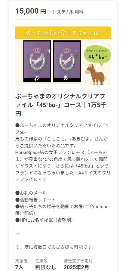 前回のプロジェクトでは、2023年10月に突然腰フラを発症してしまい、人を乗せられなくなってしまったぶーちゃまにスポットを当て、