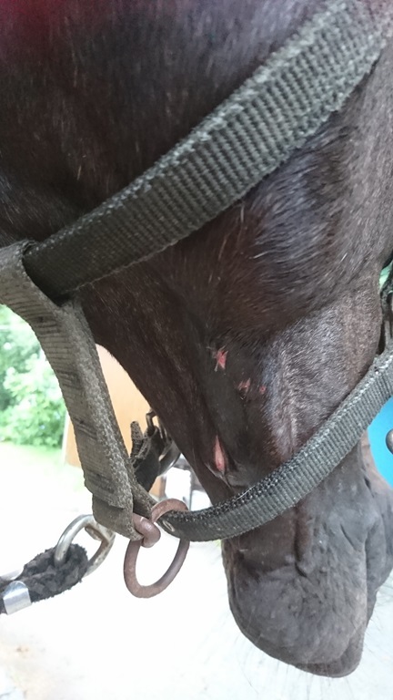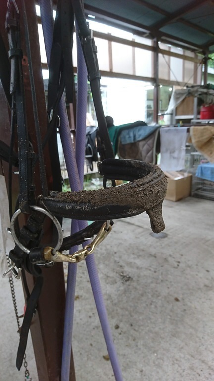 顔に着けいていた馬具が泥だらけだし