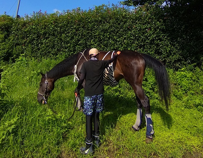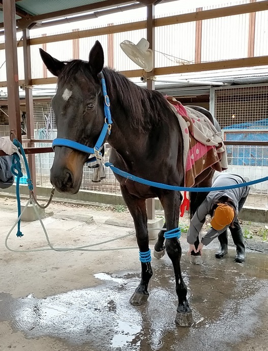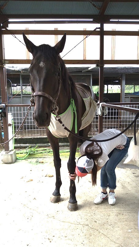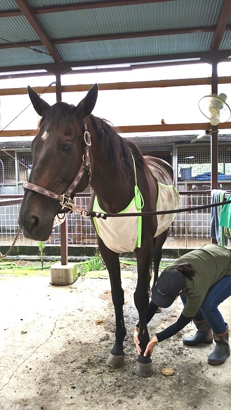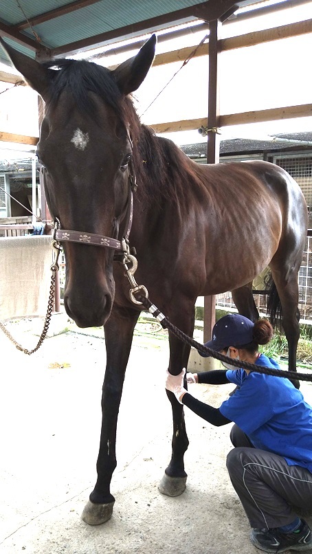屈腱炎を患って引退し、乗用馬になった馬です。