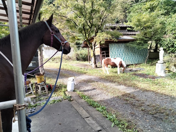 馬は無口(ホルター)というものを顔につけてリードロープで繋ぐのですが、