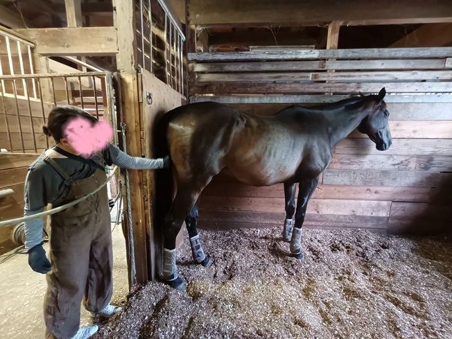 濡れてしまった全馬房のオガの交換をしてあげることができました。