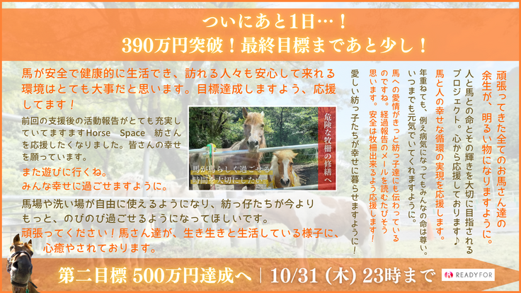 #馬の命を紡ぐために #HorseSpace紡クラファン挑戦中