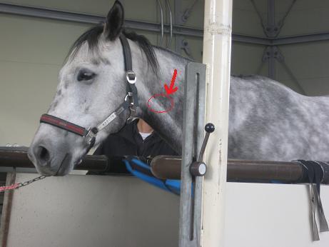 こんなふうに頸部の血管にチューブが埋め込まれている馬はほとんどが