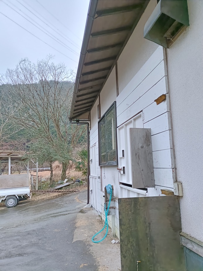 前回のクラファンの際に取り付けていただいた雨樋に雨水が達する前に、