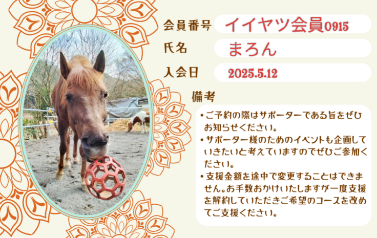 ●9月15日に誕生日を迎える「いいやつ代表」マロンに、誕生日プレゼントを贈ることができるコースです