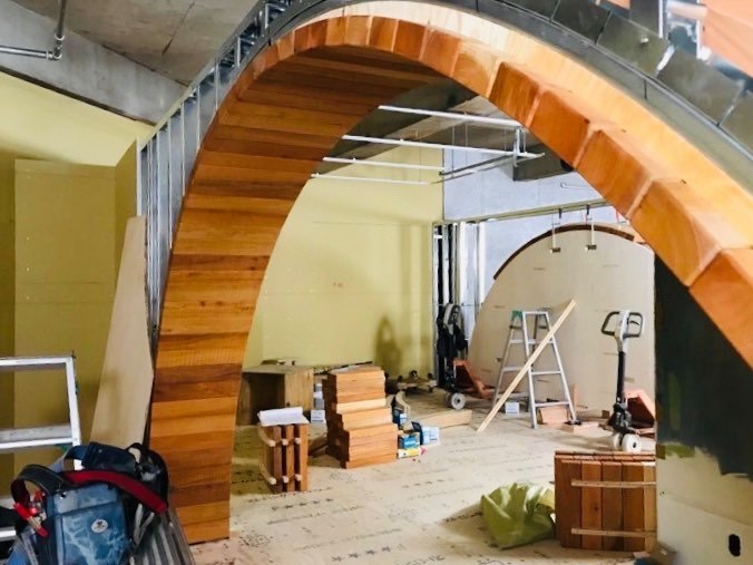 花巻おもちゃ美術館には、部屋と部屋をつなぐたくさんのアーチがあります。このアーチには、「もくれんが」という、まるで本当のレンガのような木の材料が使われます。ケヤキをはじめとするたくさんの樹種が使われていますが、なかにはウルシなどのレアな樹種も隠れておりますので、ご来館の際はレアな樹種のもくれんが探しを楽しむことができます^ ^