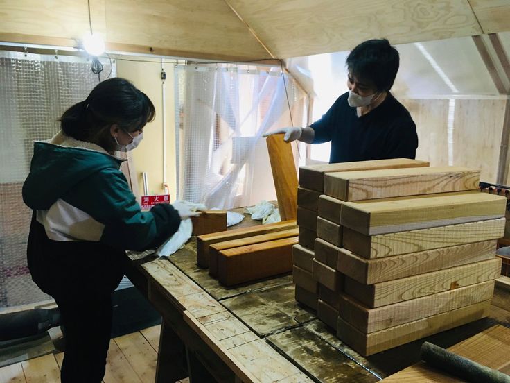 小友木材店の営業部みんなで、自然塗料で拭きあげています。塗装するとレンガ感がぐっと増していきます。ずっしりと重みのある「もくれんが」を運ぶのも、最近ようやく慣れてきました。