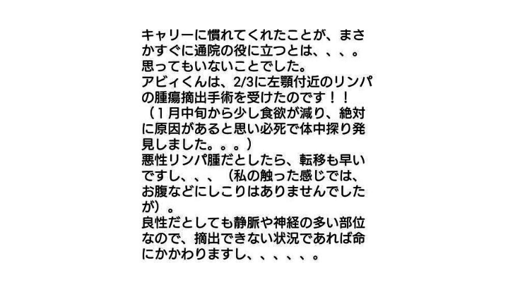 アビィ君の手術は心配したけど、ママさんがすぐに気づいてくれたから
