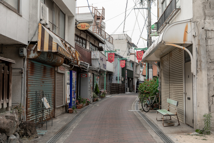 しかし、他の地域に広大なショッピングモールができた影響も大きく、車が入らない、駐車場がない土生商店街からはだんだんと人が消えていき、住宅密集地の商店街には新しく住居を構えるファミリーも少なく、住民の高齢化とともに少しずつ活気も失われていきました。