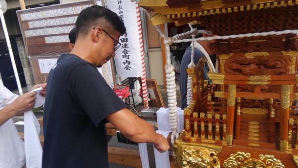 私は別件の用で参加出来ませんでしたが弊社の吹きガラス工房吹きガラス職人中野和博と20年近くの友人で御神輿・お祭りの運営等の準備から参加して御神輿も担いでおりました。
