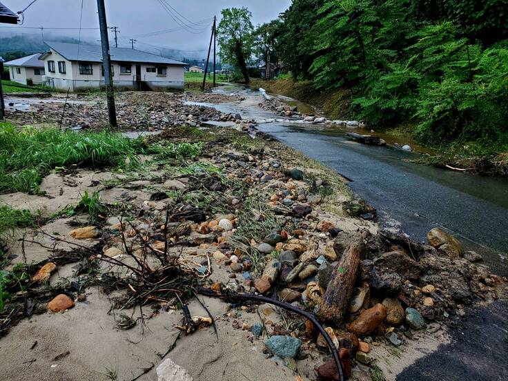令和4年8月3日に山形県南部を襲った豪雨災害。河川はいたるところで氾濫し、濁流となって家屋や農地に押し寄せました。